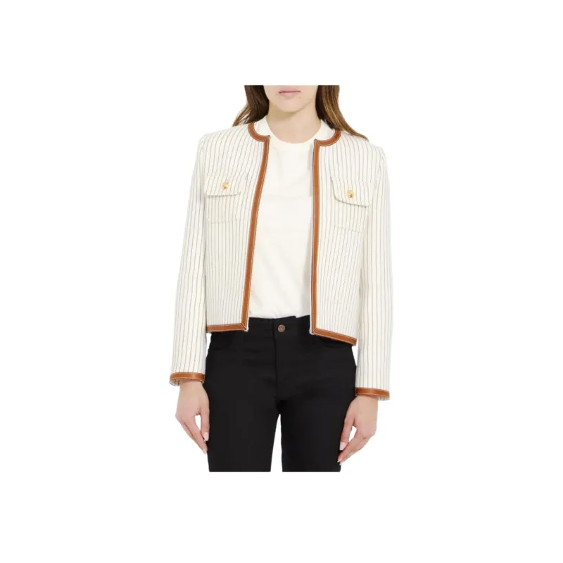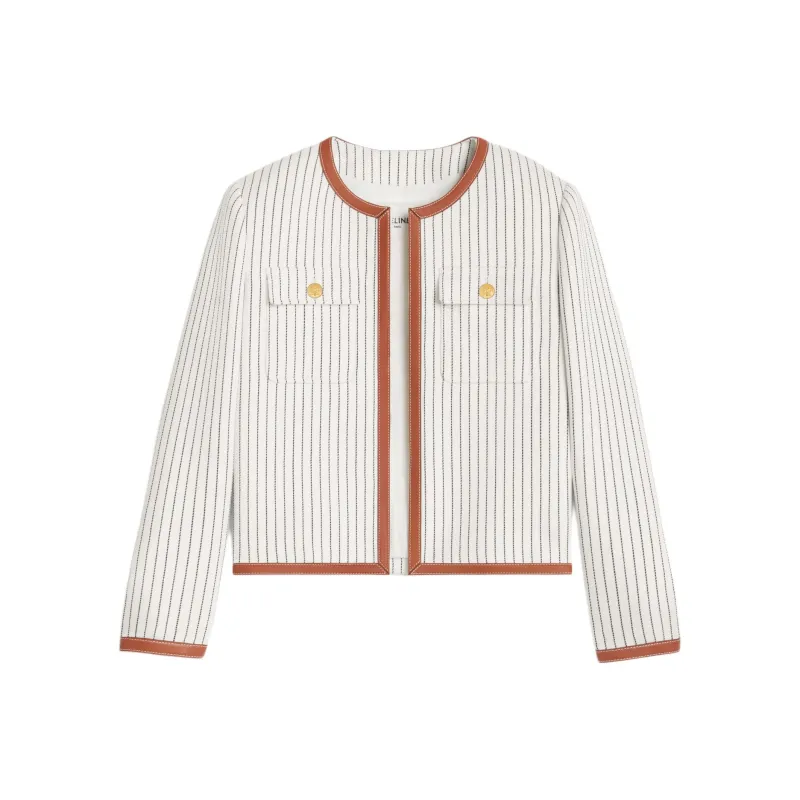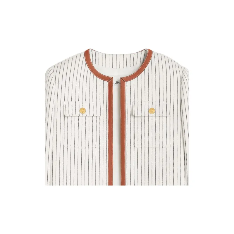 CELINE Челси Куртка В Полосатой Шерсти Куртки и Пальто Женские Экрю