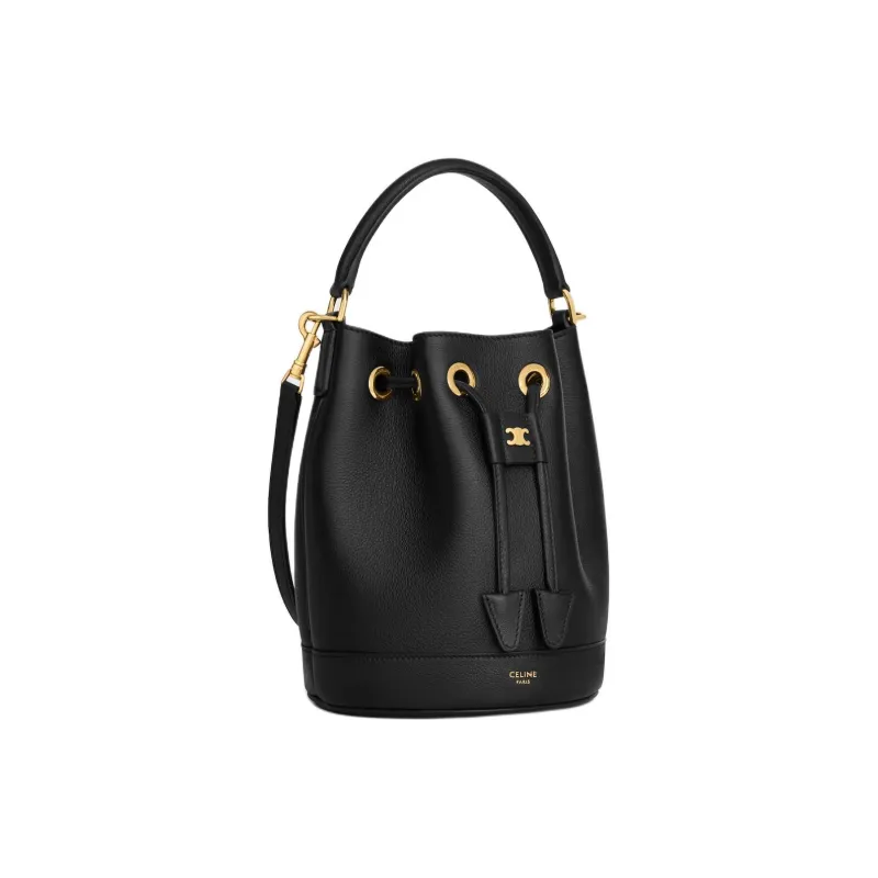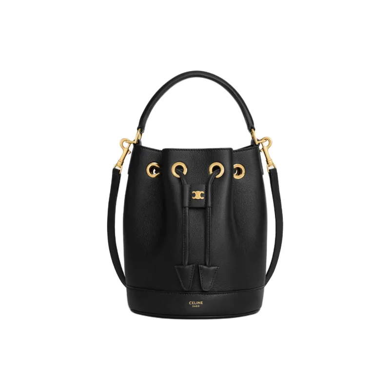Celine Коровья кожа Ведрообразная сумка Сумка через плечо Сумка обычная Женская Черная