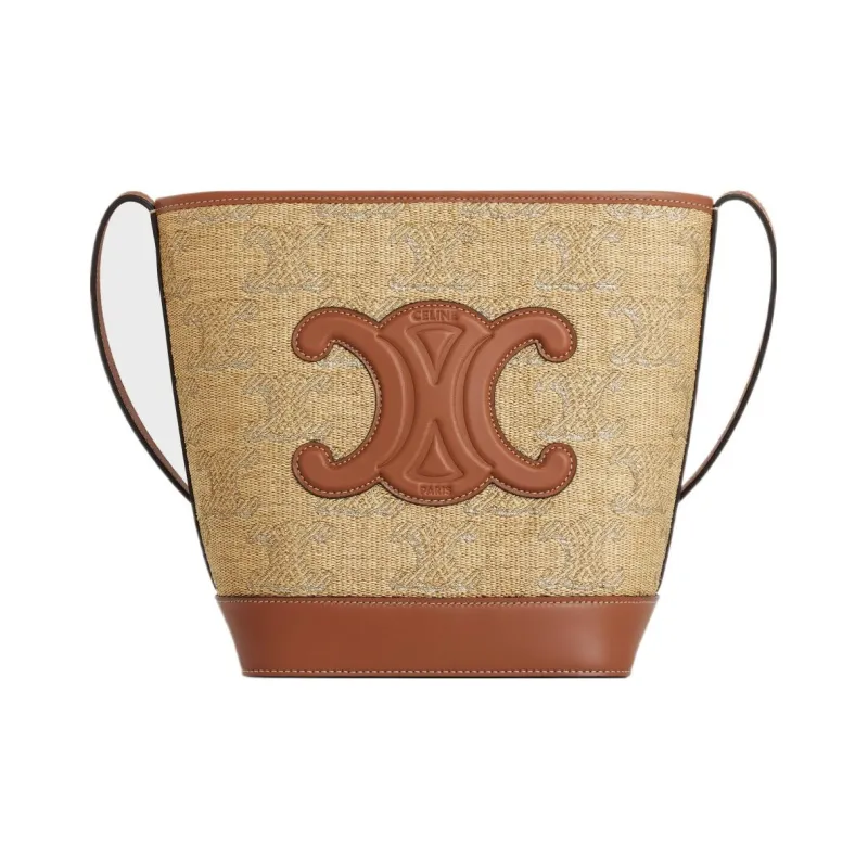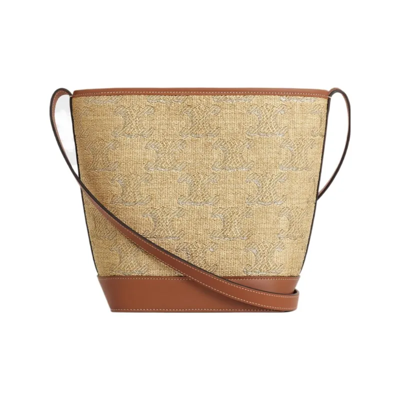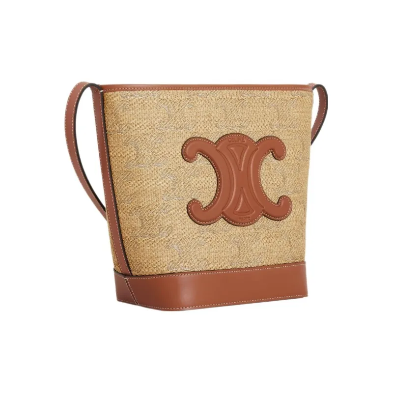 CELINE Cuir Triomphe Ткань Ведрообразная Сумка через плечо Маленькая Женская Естественный Серебряный