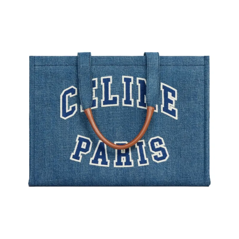 CELINE Деним Тоут Сумка Сумка для покупок Сумка на плечо Сумка большая Женская Океанский синий