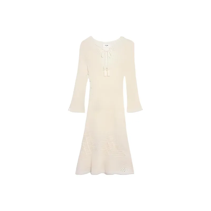 CELINE FW22 Длинное платье с длинными рукавами женское бежевый желтый