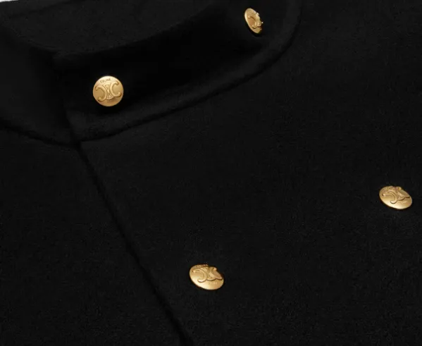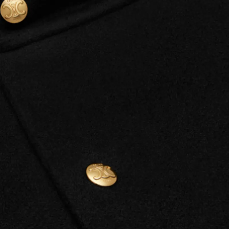CELINE Высокий Ожерелье-чокер Плащ в Двойном Лице Кашемировое Пальто Женское Черное