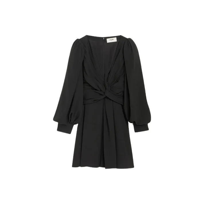CELINE Черное Женское Длинное Платье с Рукавами