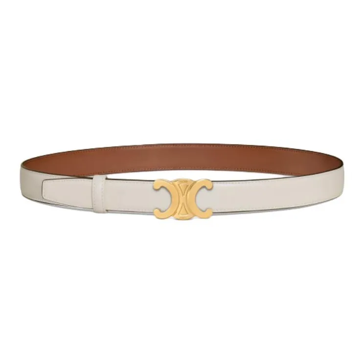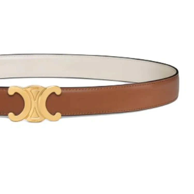 CELINE Кожаные ремни Женские Бежевый Коричневый Ширина 2,5 см