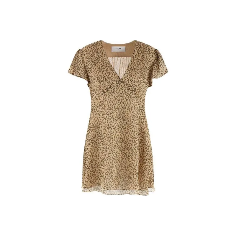 CELINE Короткое платье с короткими рукавами женское коричневое