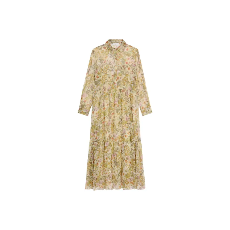 CELINE SS25 Длинное Платье с Длинными Рукавами Женское Кремовое