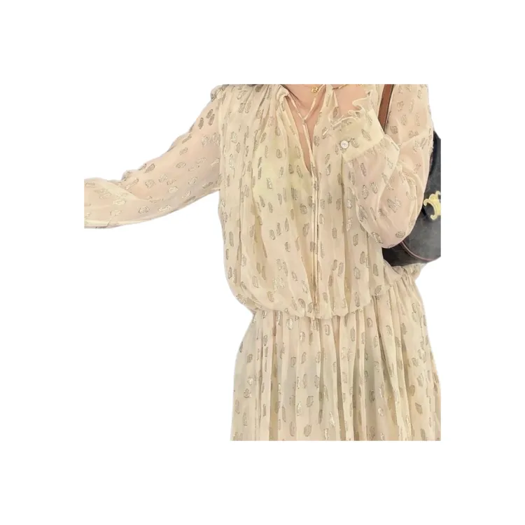 CELINE Бежево-желтый Женские Длинные Платья с Рукавами