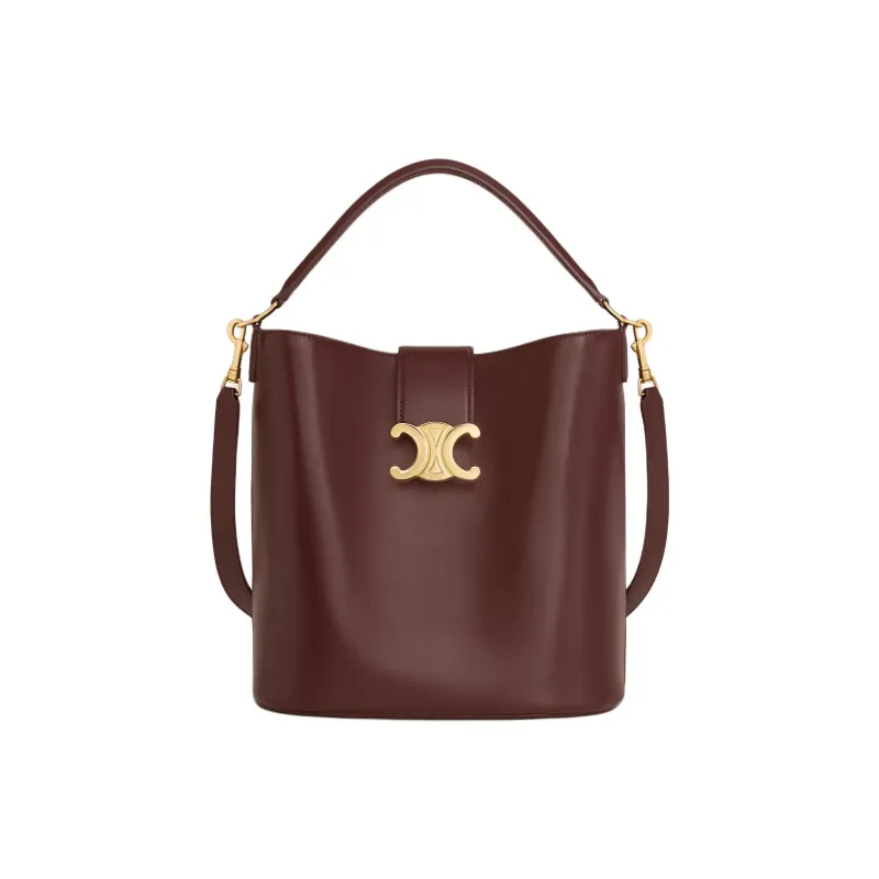 Celine Louise Телячья кожа Ведрообразная сумка Сумка через плечо Средний размер Женская Каштановый цвет