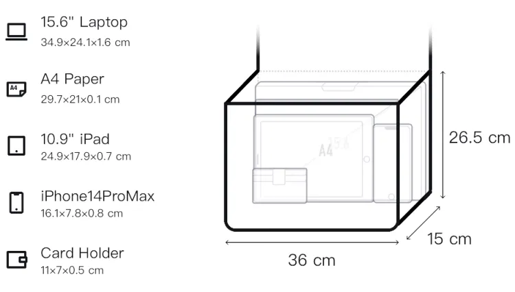 Длина (размер в длину): 36/26,5 см, Ширина корпуса: 15 см, Длина корпуса: 26,5 см