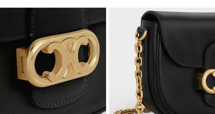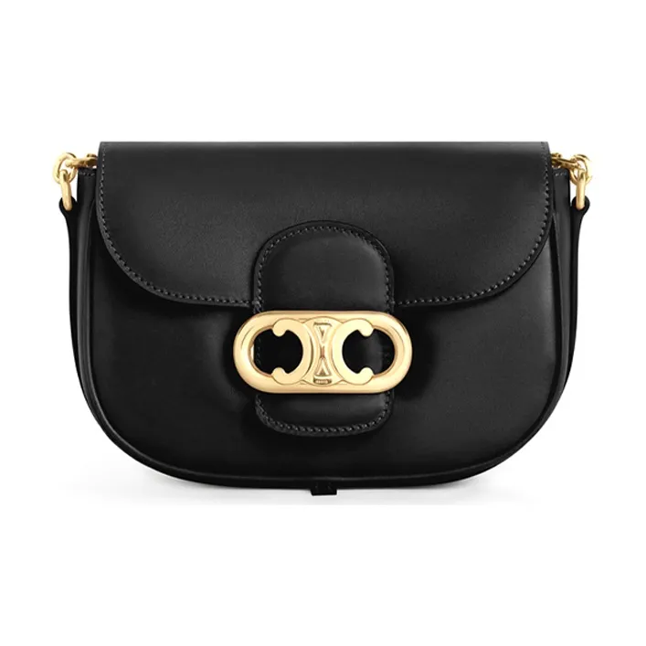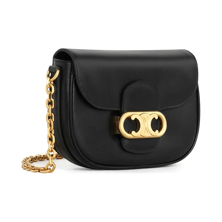 CELINE MaillonTriomphe Сумка из коровьей кожи с цепочкой сумка через плечо среднего размера женская черная