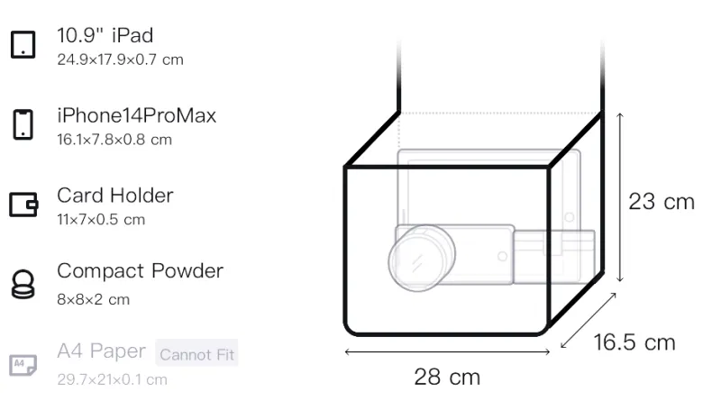 Верхняя одежда Длина: 37 см, Низ Длина: 28 см, Тело Ширина: 16,5 см, Тело Длина: 23 см