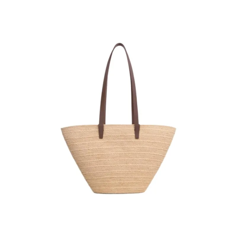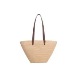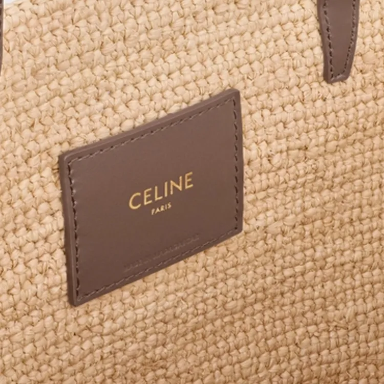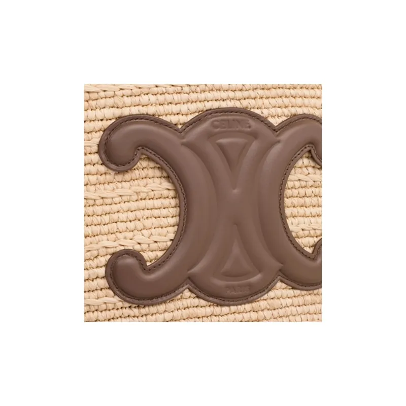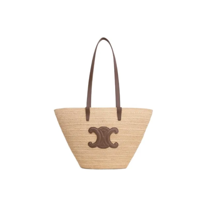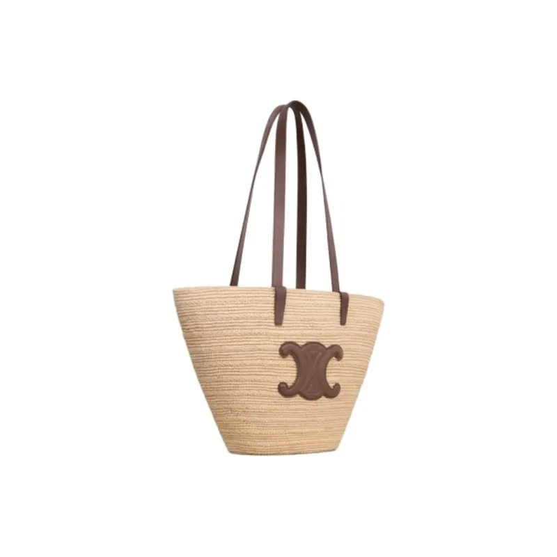 CELINE Panier Raffia Calfskin Trim Shoulder Bag Crossbody Bag Medium Women's Glazed Coating Brown