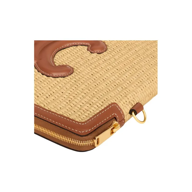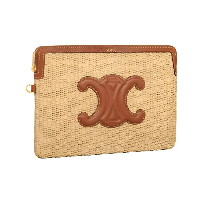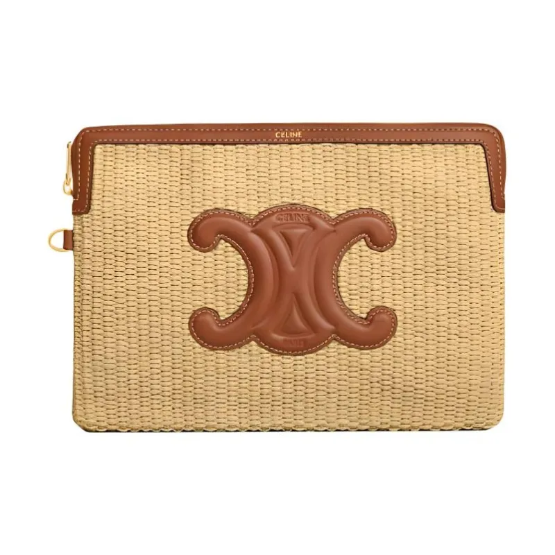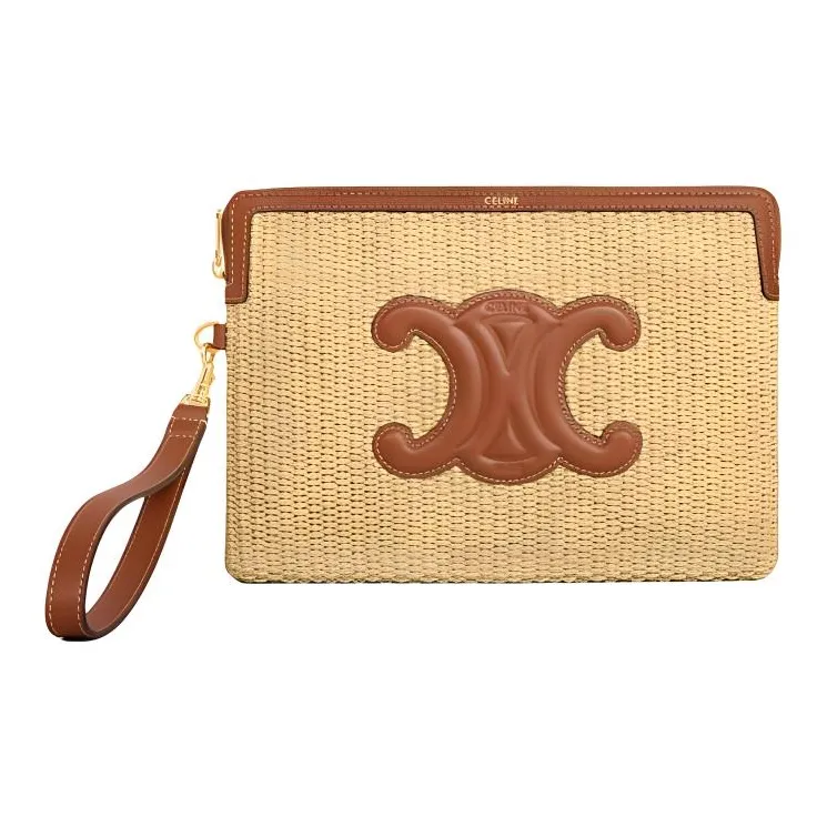 CELINE Растительный материал Effect Ткань с коровьей кожей Клатч Маленький Женский Натуральный Коричневый