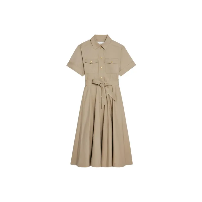 CELINE SS23 Короткий рукав Платье Женское Хаки