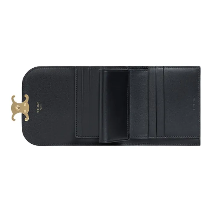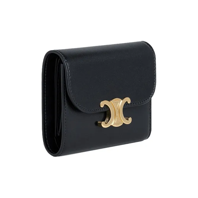 CELINE Блестящий Гладкий Кошелек из Овечьей Кожи Женские Черный