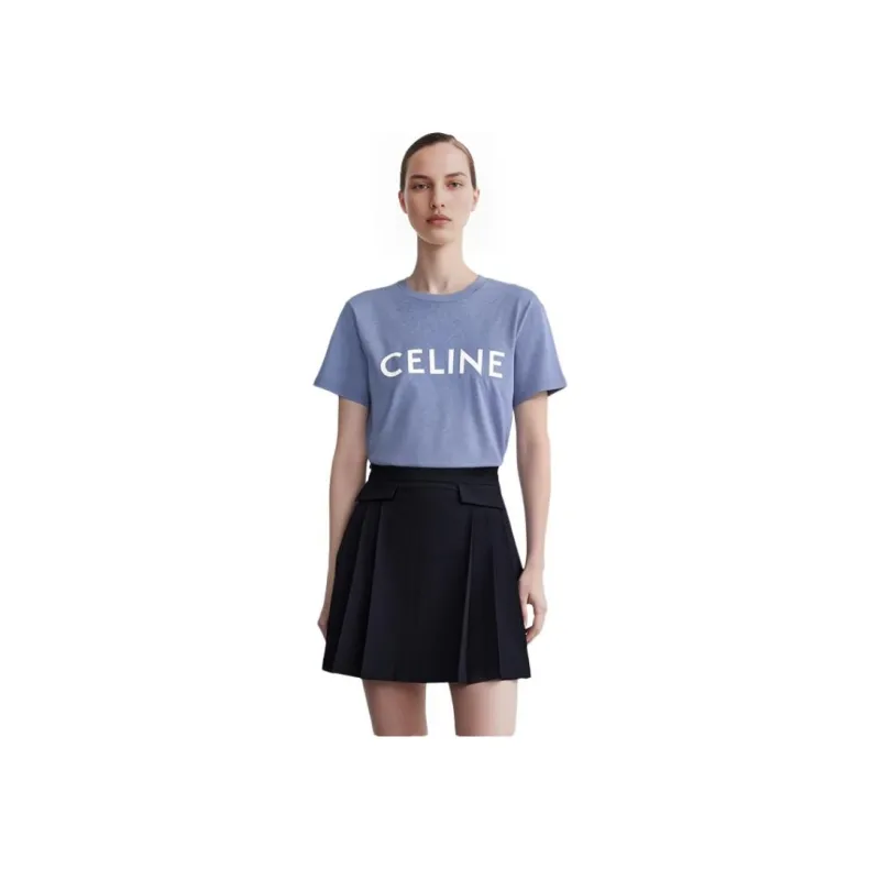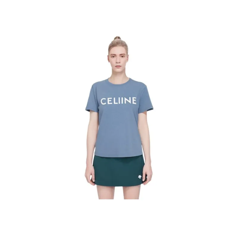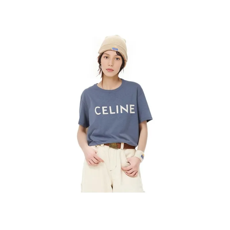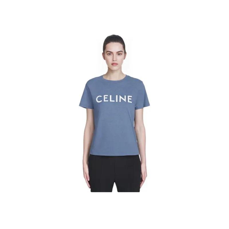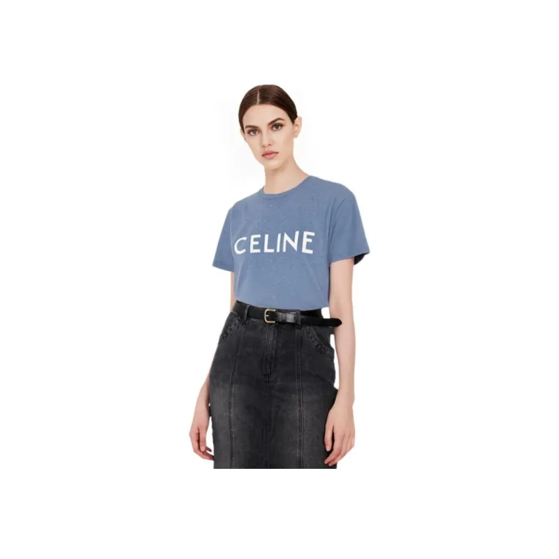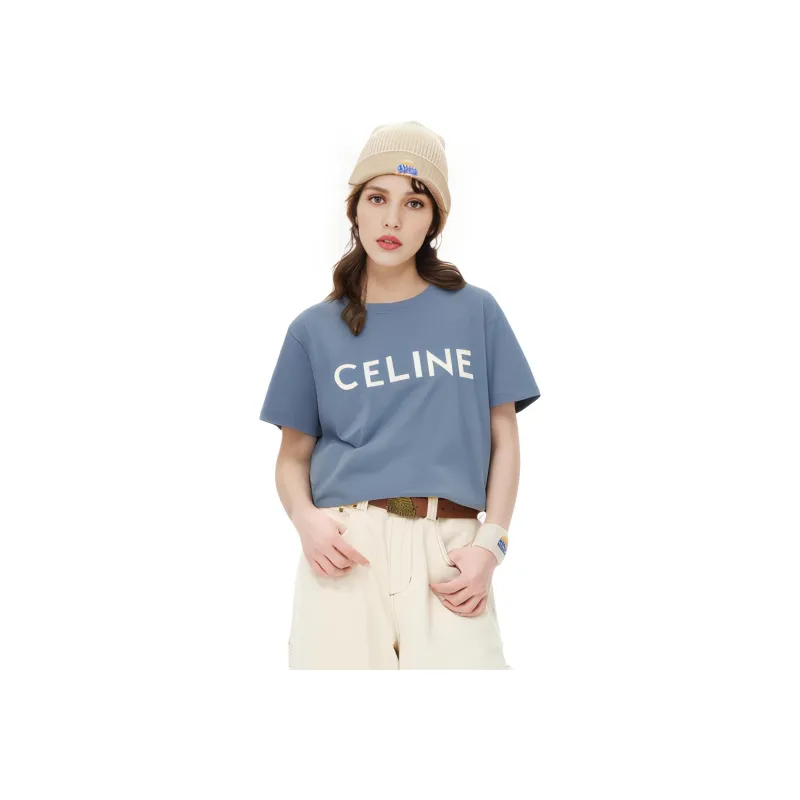 CELINE SS22 Рукав с оборванным плечом T-рубашка Женская Синяя