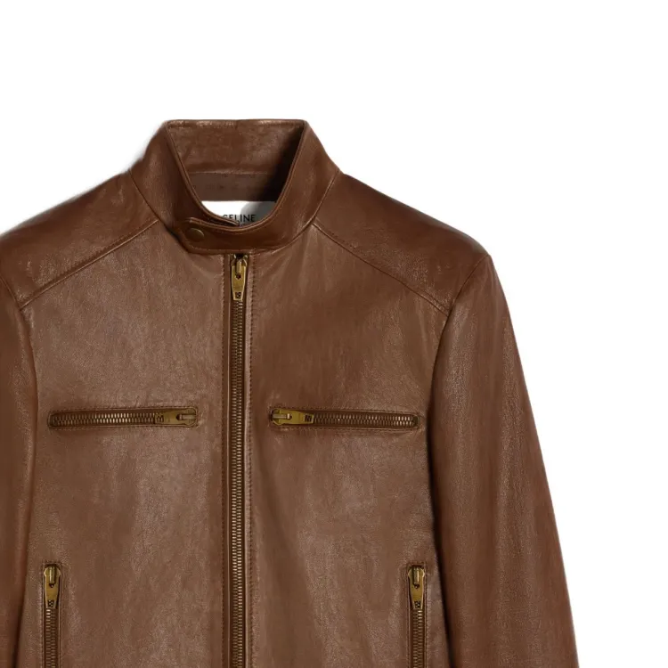 CELINE SS24 Кожа Куртка Женская Коричневая