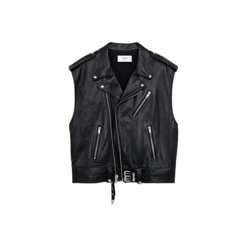 CELINE SS25 Кожа Куртка Мужская Черная