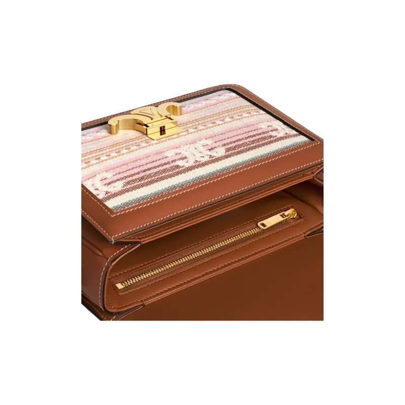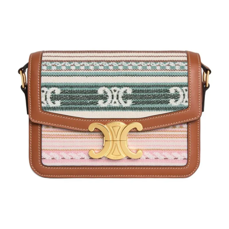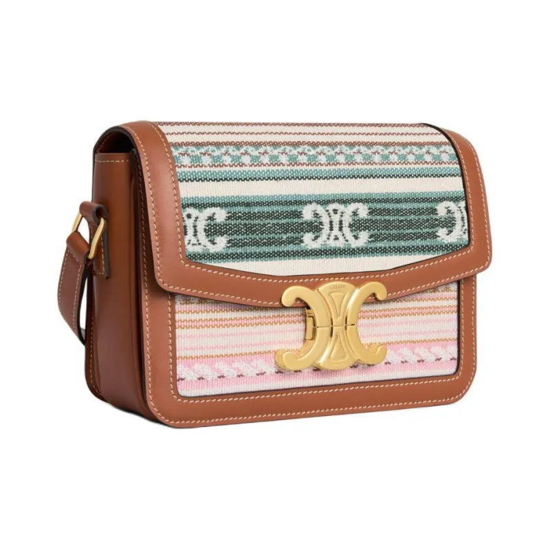 CELINE Teen Triomphe Ткань Сумка через плечо Сумка на плечо Стандартная Женская Коричневая и Розовая