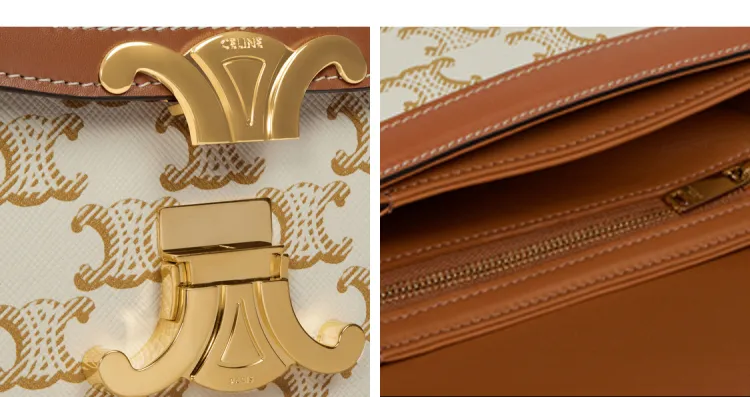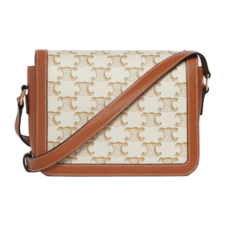 CELINE Teen Triomphe Ткань с коровьей кожей Сумка на плечо Сумка Сумка через плечо Сумка через плечо Стандартная Женская Белая