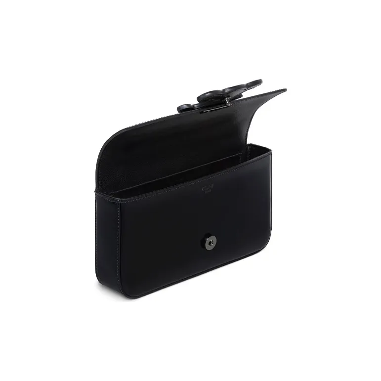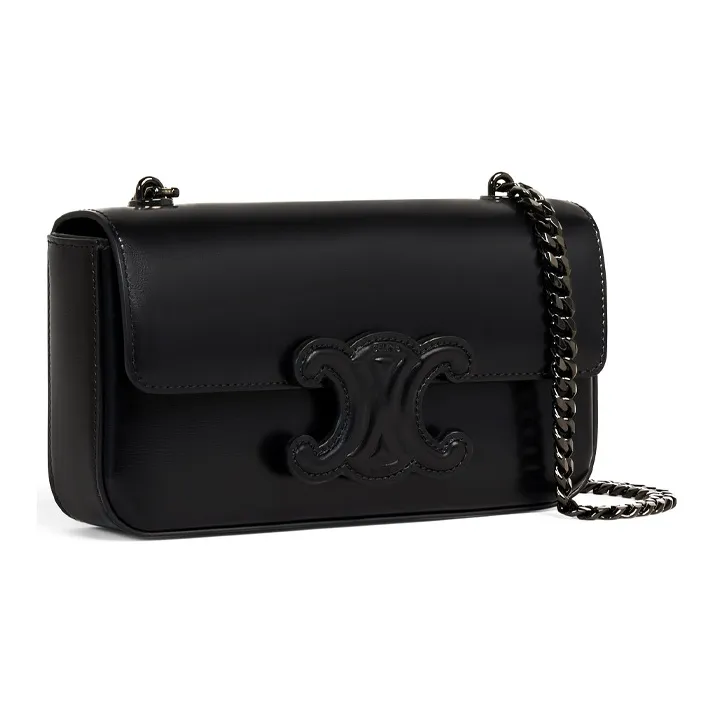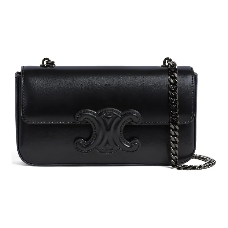 CELINE Triomphe Arc De Triomphe Все Черное Блестящая Гладкая Коровья Кожа Плечевая Сумка Сумка Сумка через плечо Женская Черная
