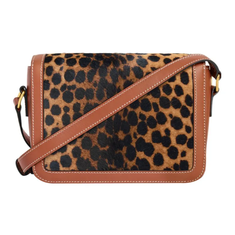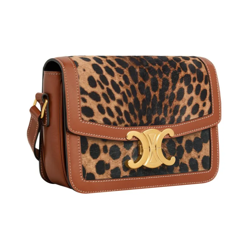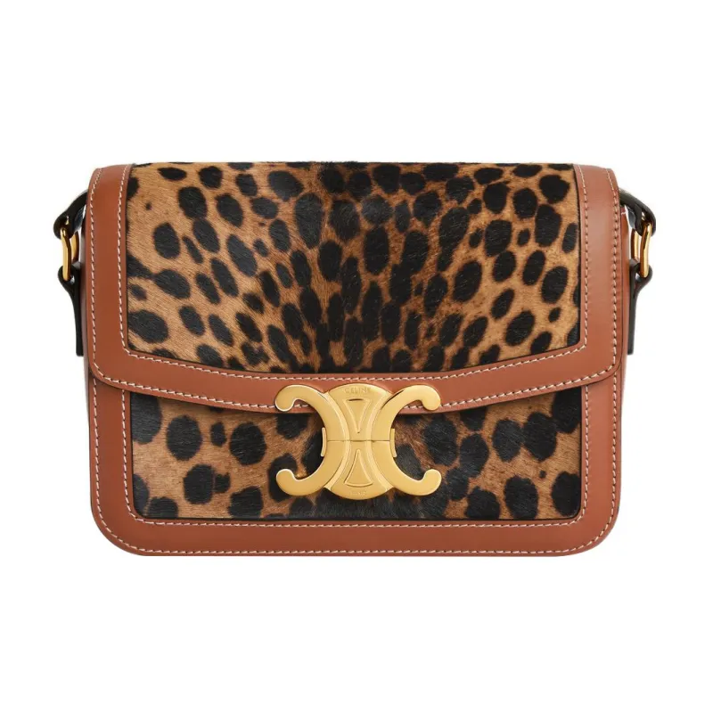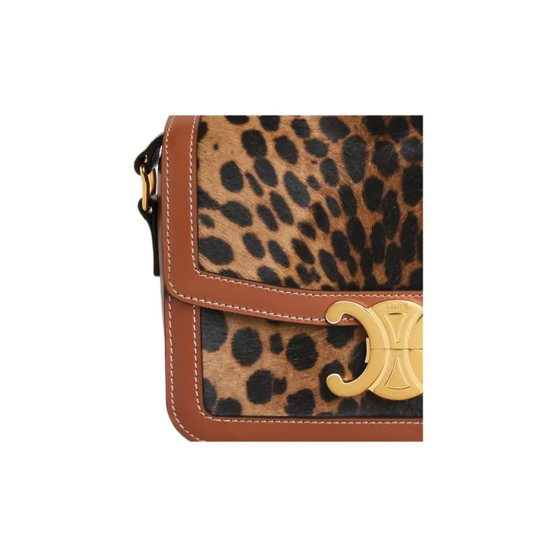 CELINE Triomphe Пони Кожа Телячья кожа Отделка Сумка через плечо Женская Леопардовый принт Коричневый