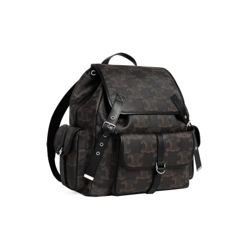 CELINE Triomphe Холст Телячья кожа Рюкзак Большой Мужской Черный