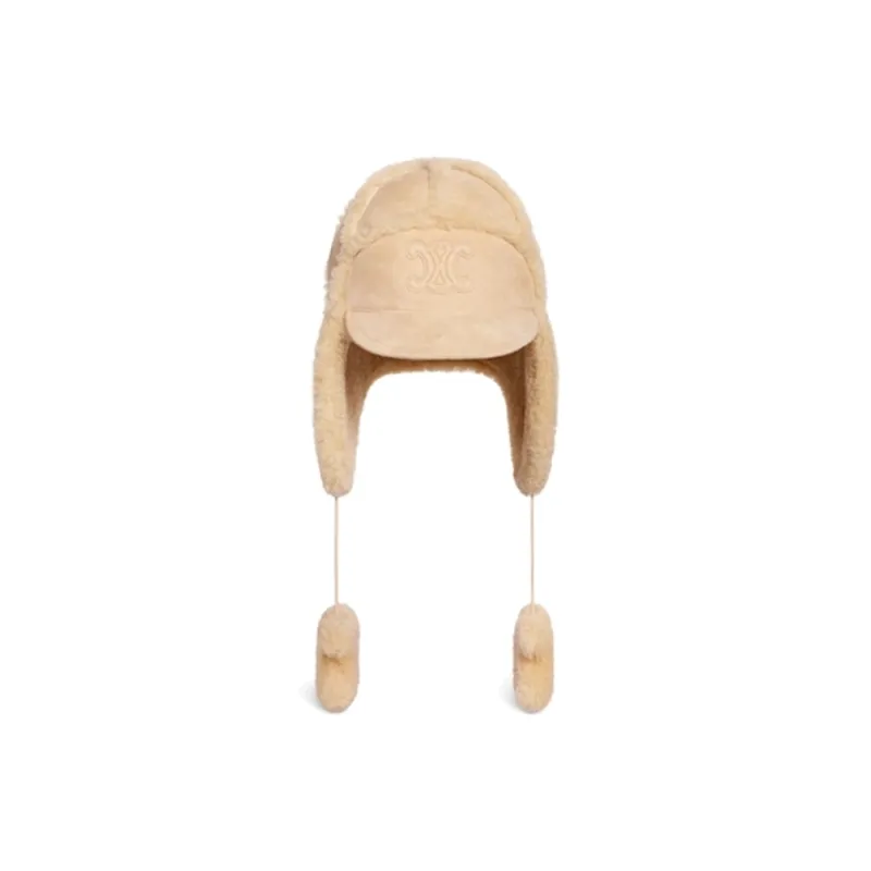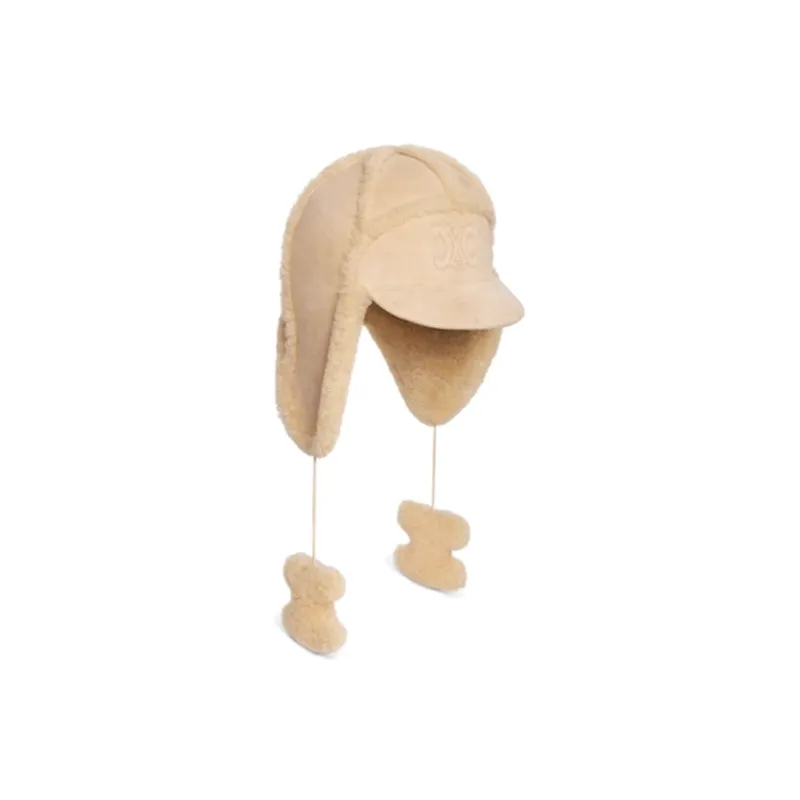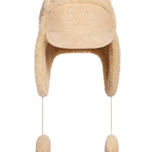 CELINE Shearling Шапки и Кепки Женские Бежевые