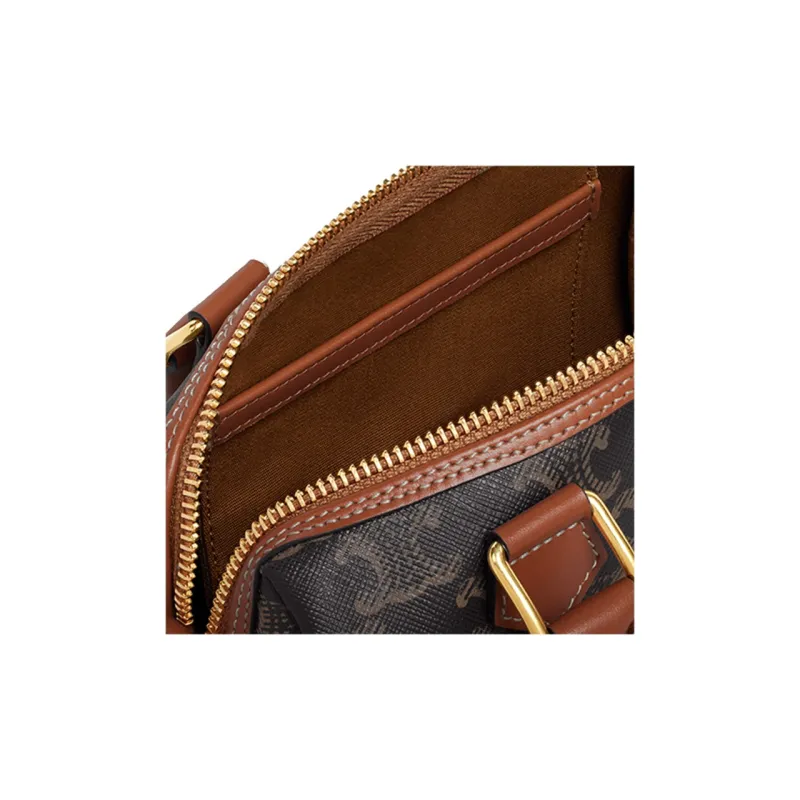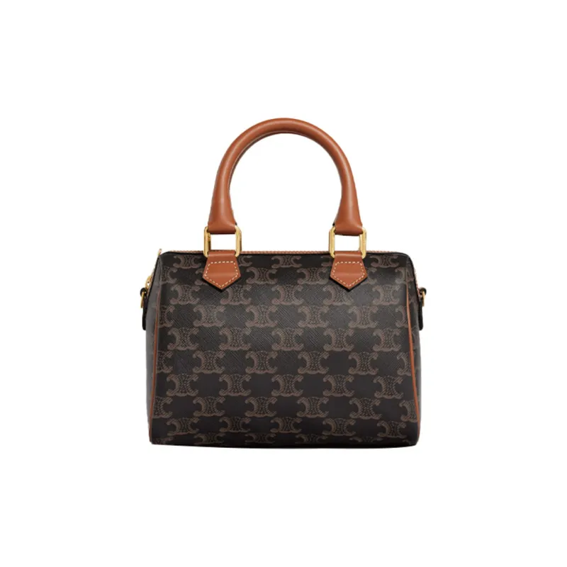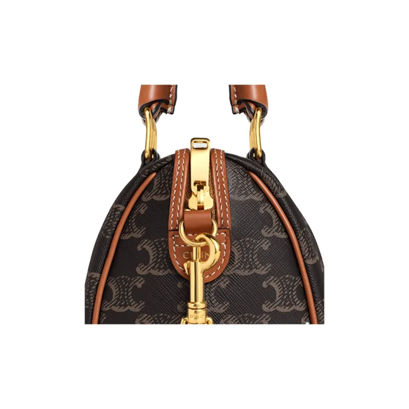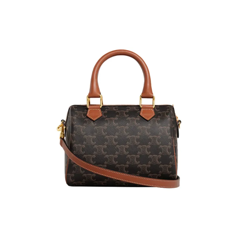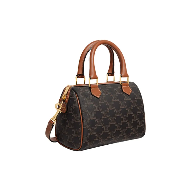 CELINE Triomphe Корова Кожа Бостон Сумка через плечо Сумка Маленькая Женская Коричневая