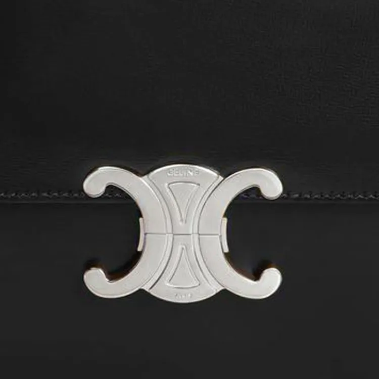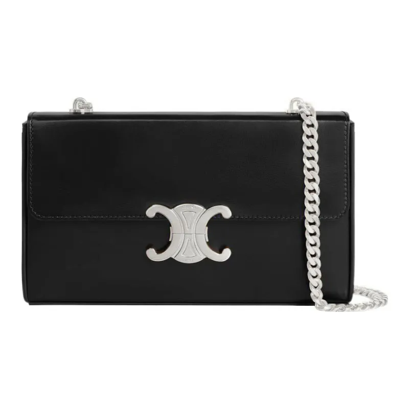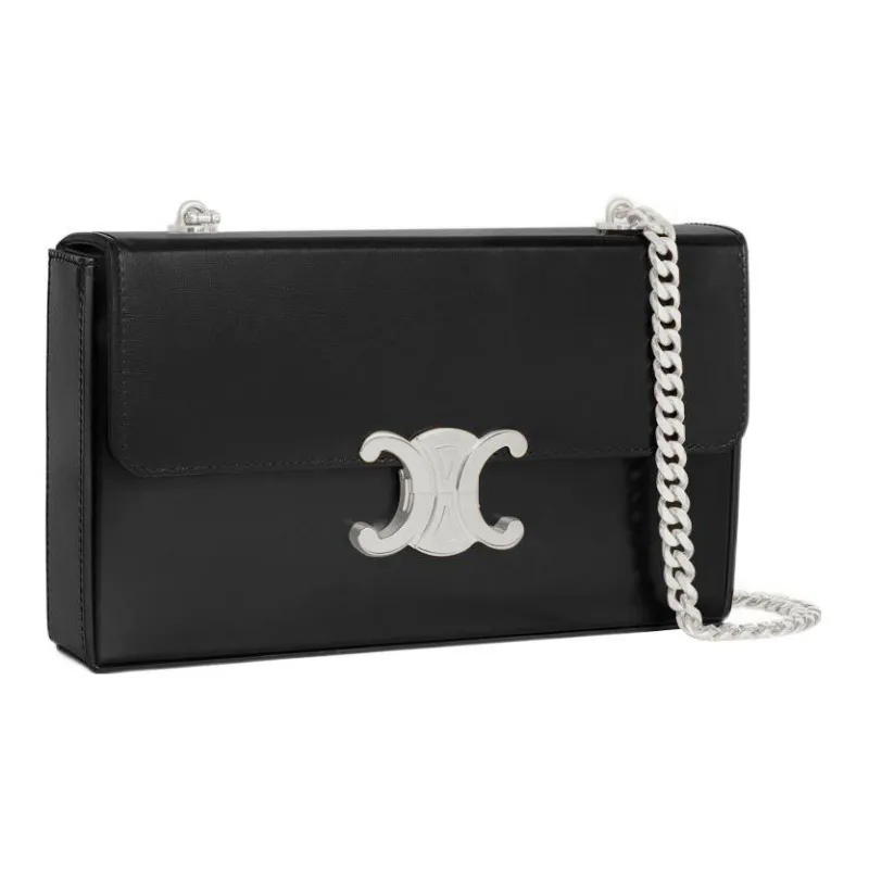CELINE Triomphe Корова Кожа Коробка Сумка Сумка через плечо Сумка на плечо Женская Черная