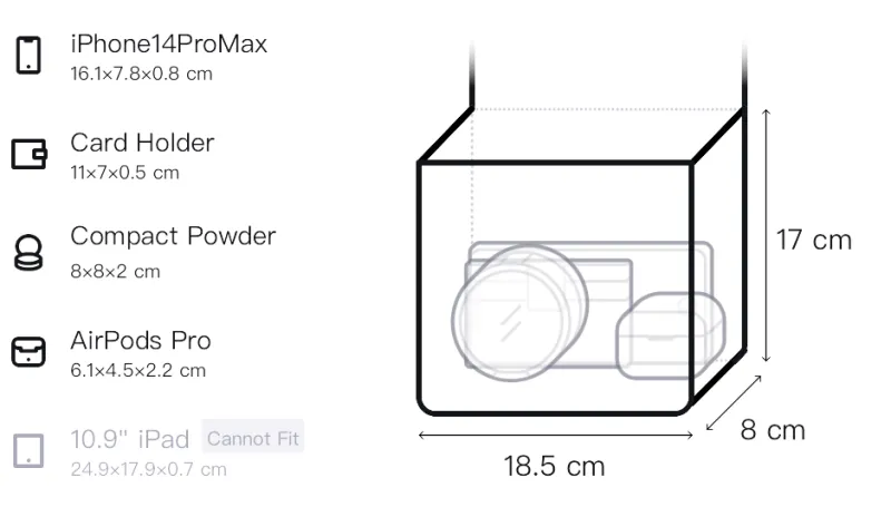 Д18,5*Ш8*В17см