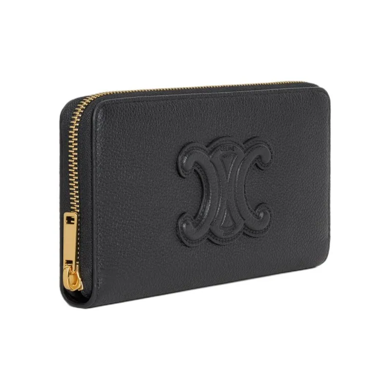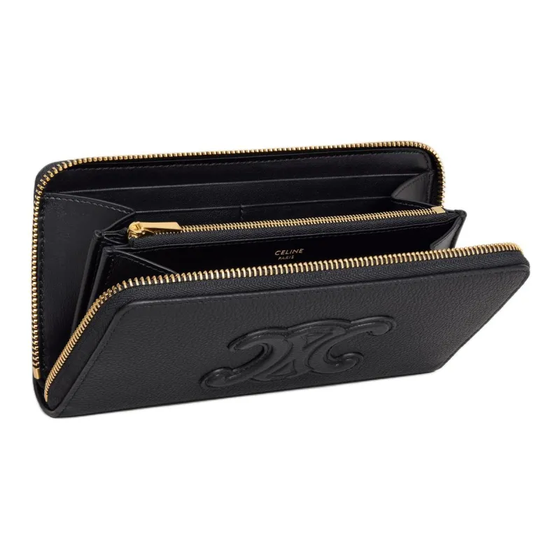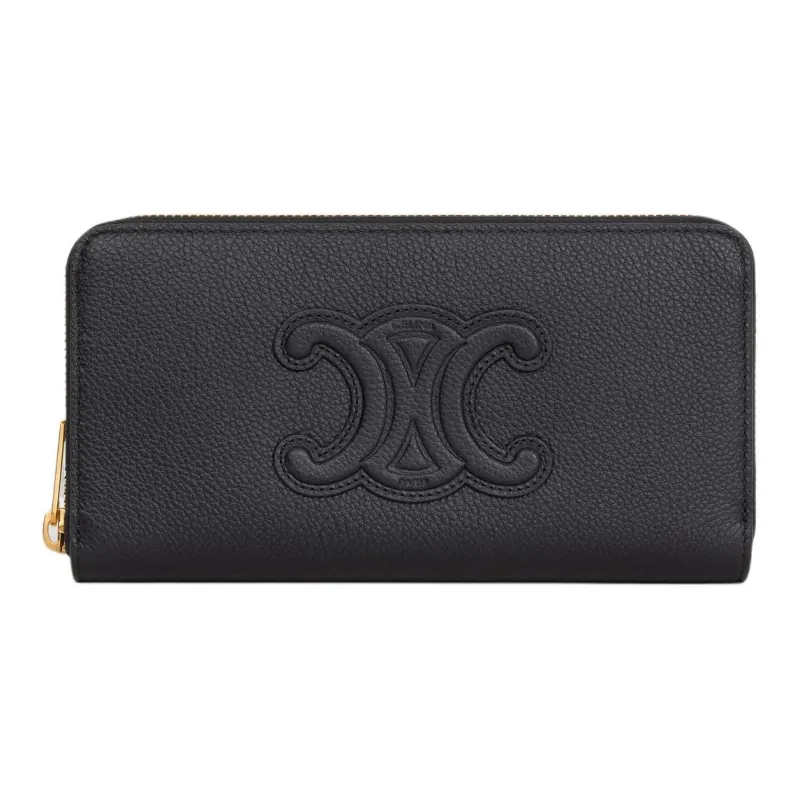 CELINE Triomphe Крупнозернистая текстура Телячья кожа Кошелек Большой Женский Черный