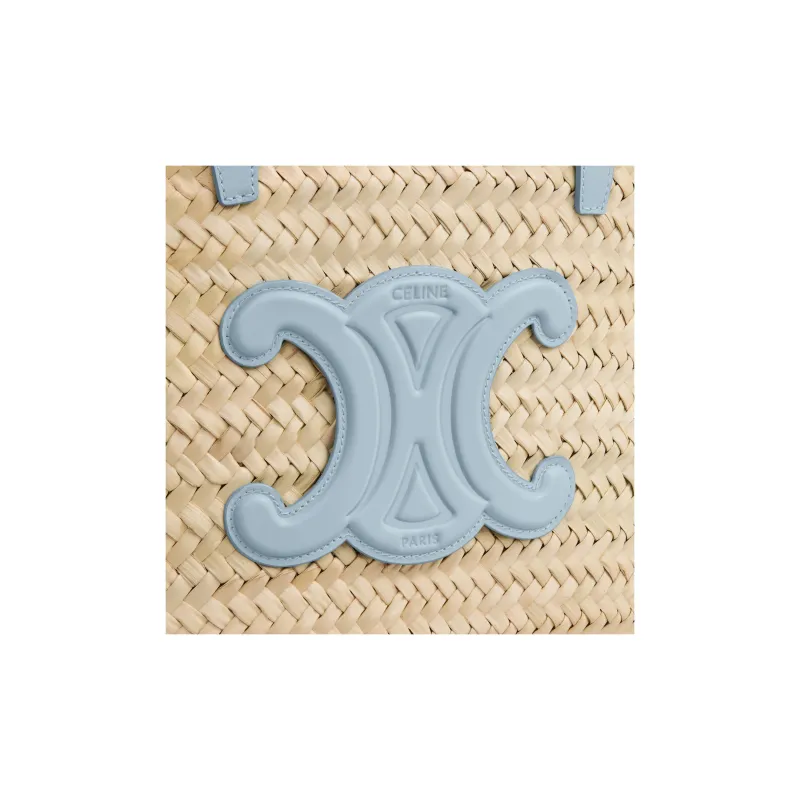 CELINE Triomphe Пальмовый лист с коровьей кожей цветовая схема сумка-корзинка одно плечо сумка средний размер женский светло-синий