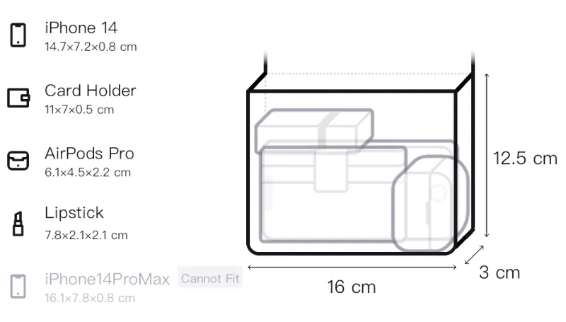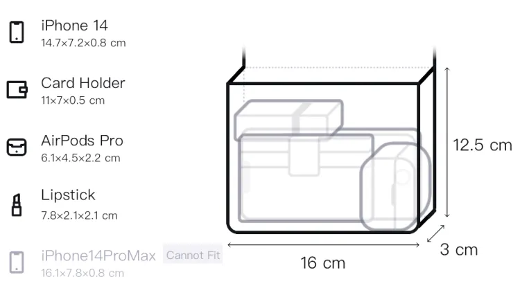 Длина 16 см * Ширина 3 см * Высота 12,5 см