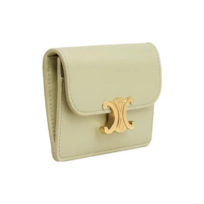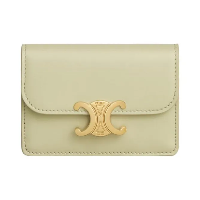 CELINE Triomphe Блестящий Телячья кожа Держатель для карт Женские Миндально-зеленый