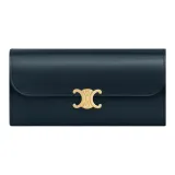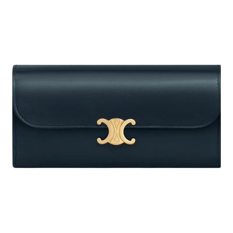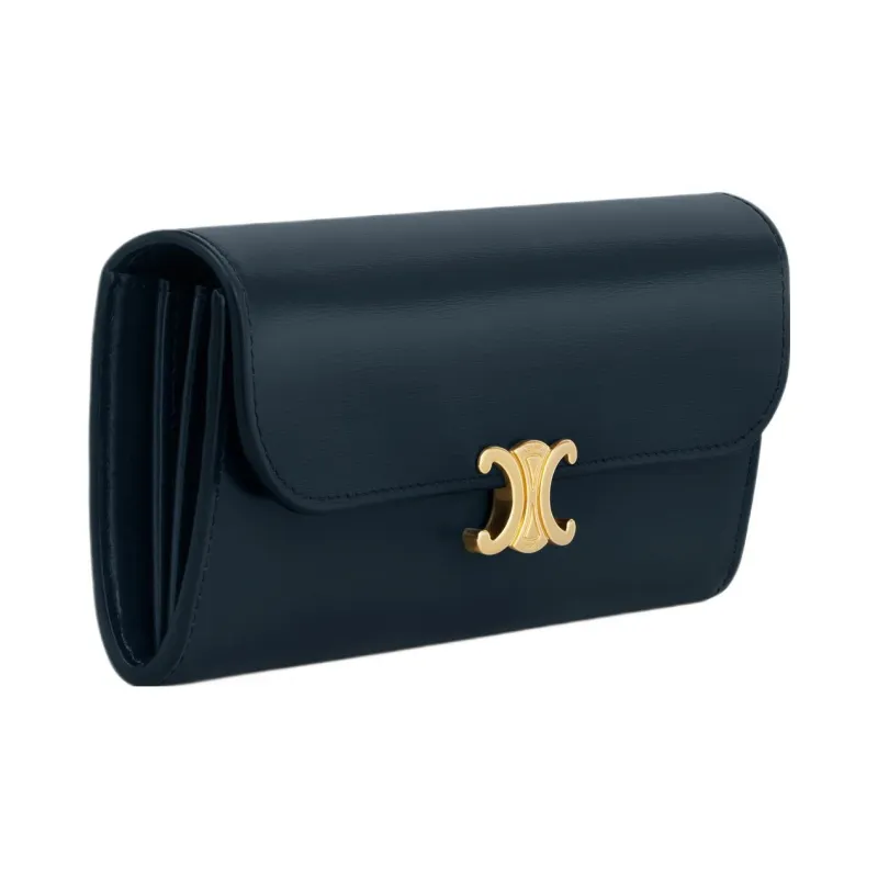 CELINE Triomphe Блестящий Телячья кожа Кошелек Большой Женские Морской синий