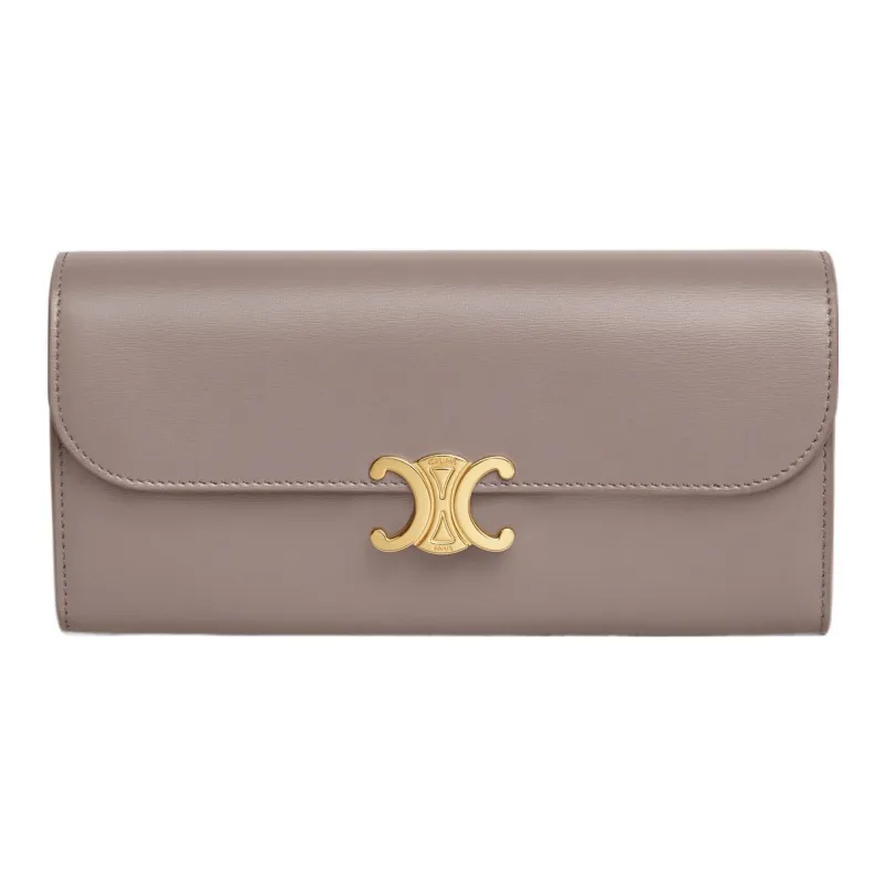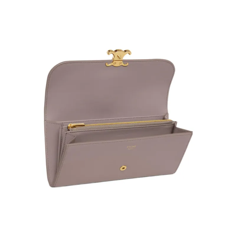 CELINE Triomphe Блестящий Телячья кожа Кошелек Большой Женские Пыльно-розовый
