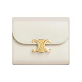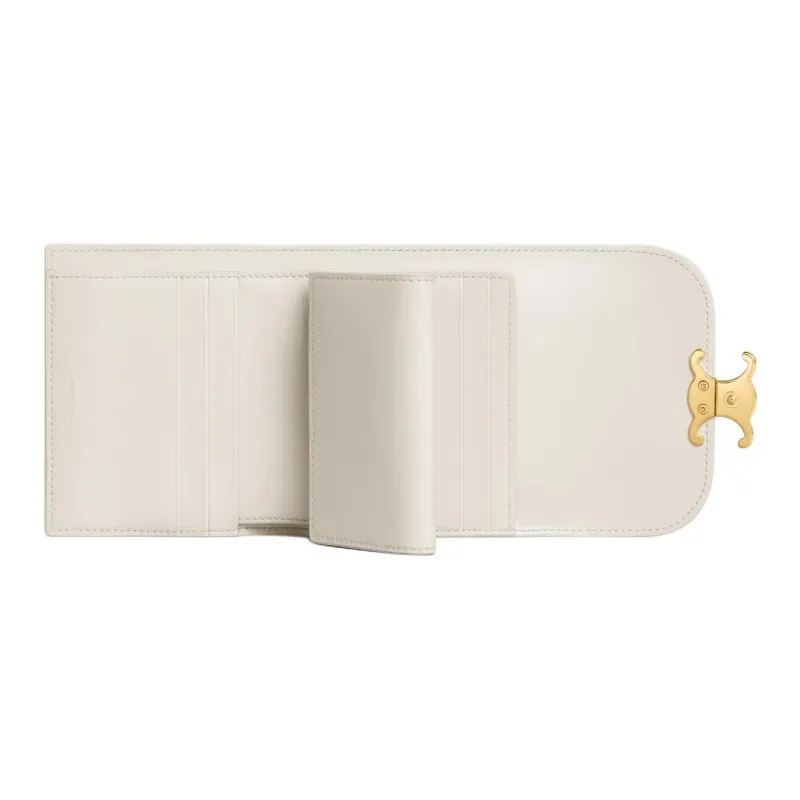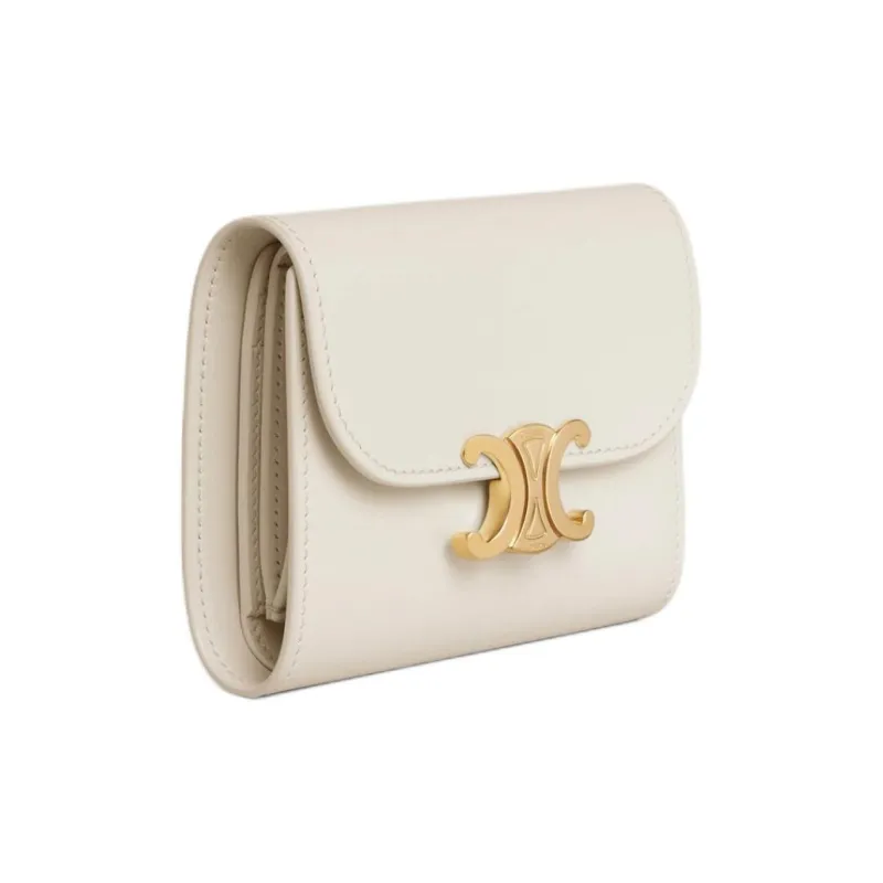 CELINE Triomphe Блестящий Телячья кожа Кошелек Маленький Женская Белый Хлопок