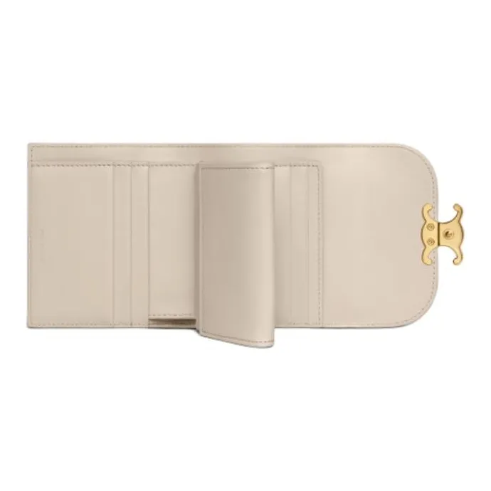CELINE Triomphe Блестящий держатель для карт и кошелек из коровьей кожи маленький женский светлый камень