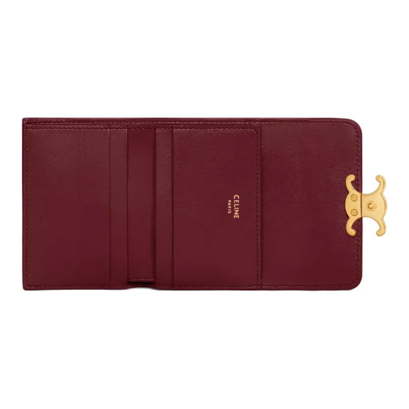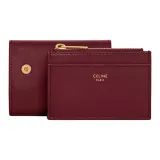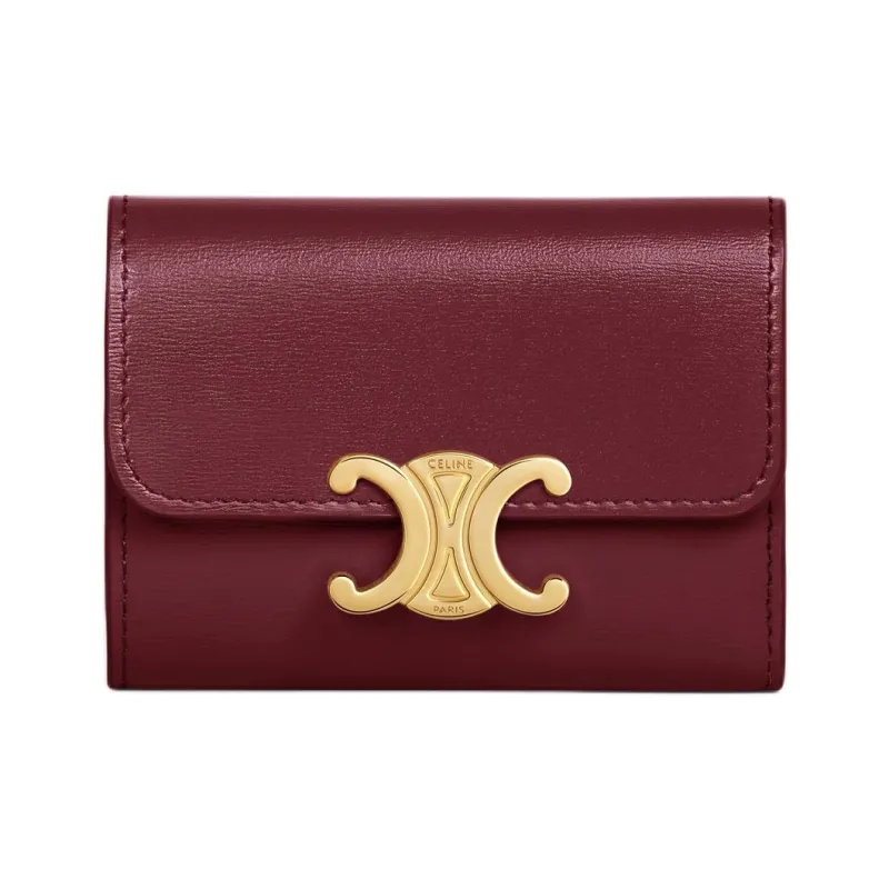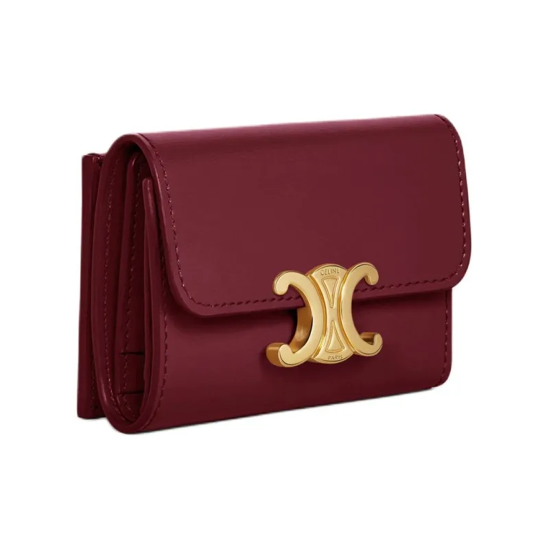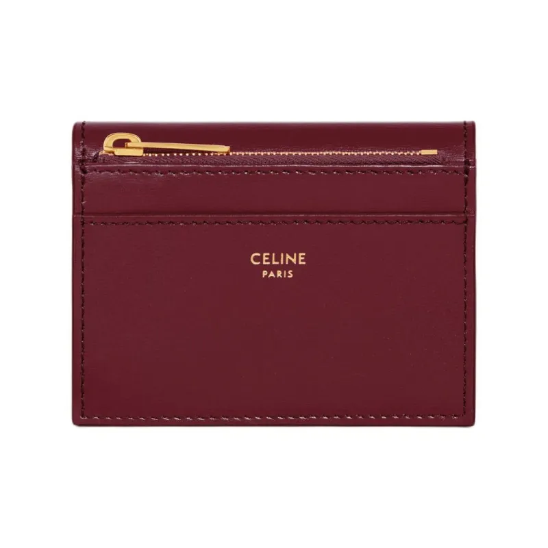 CELINE Triomphe Блестящий Корова Кожа Монета Кошелек Кошелек Мини Женский Светлый Бордовый