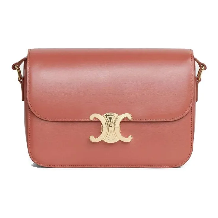 CELINE Triomphe Блестящая сумка из коровьей кожи плечо сумка через плечо сумка через плечо средний размер женская терракотовая