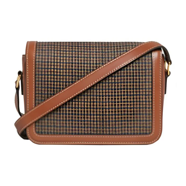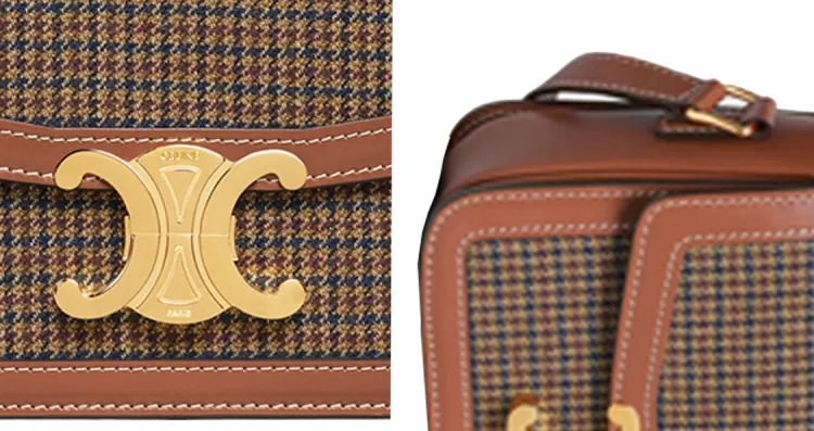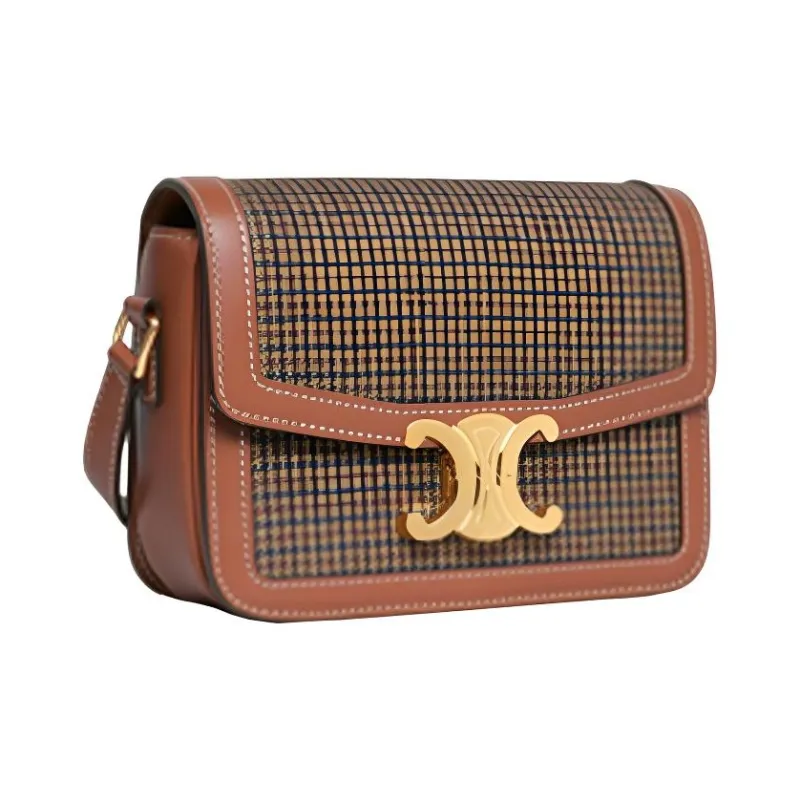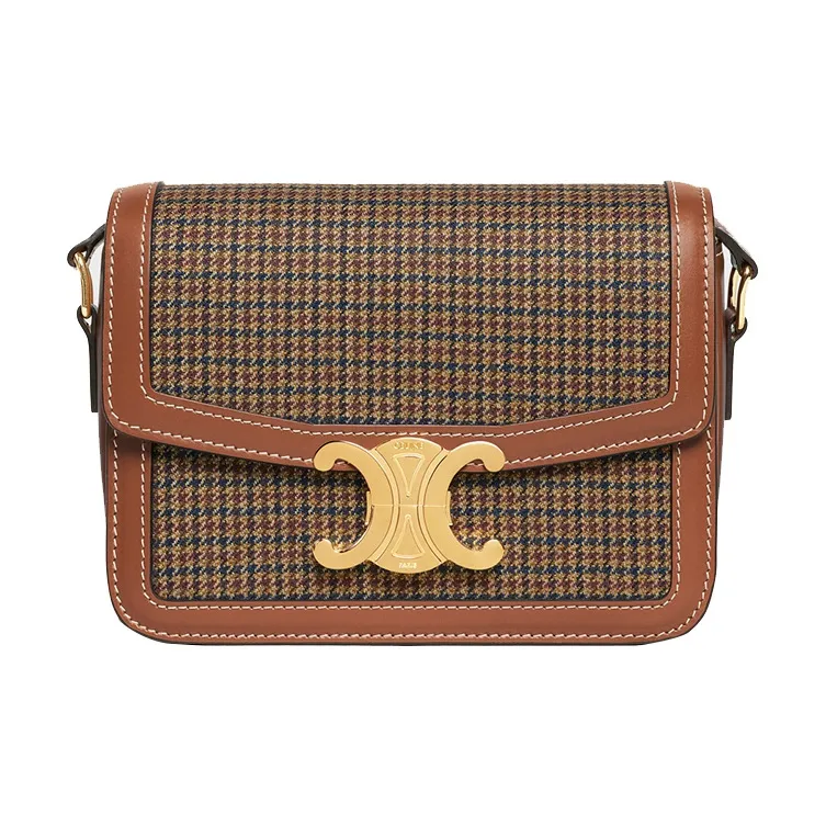 CELINE Triomphe Твид And Коровья кожа Сумка через плечо Сумка на плечо Женская Бежевая Коричневая