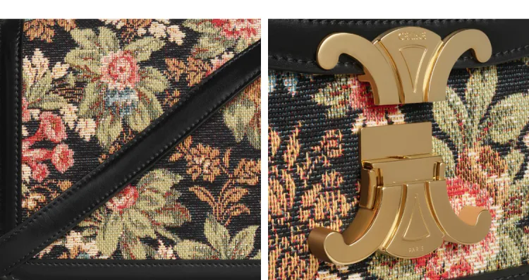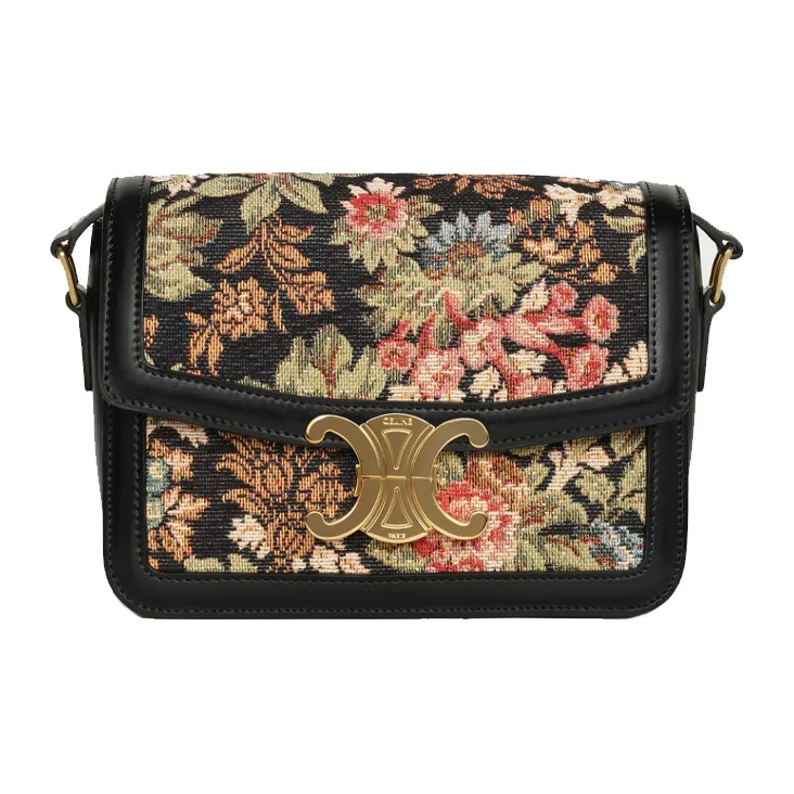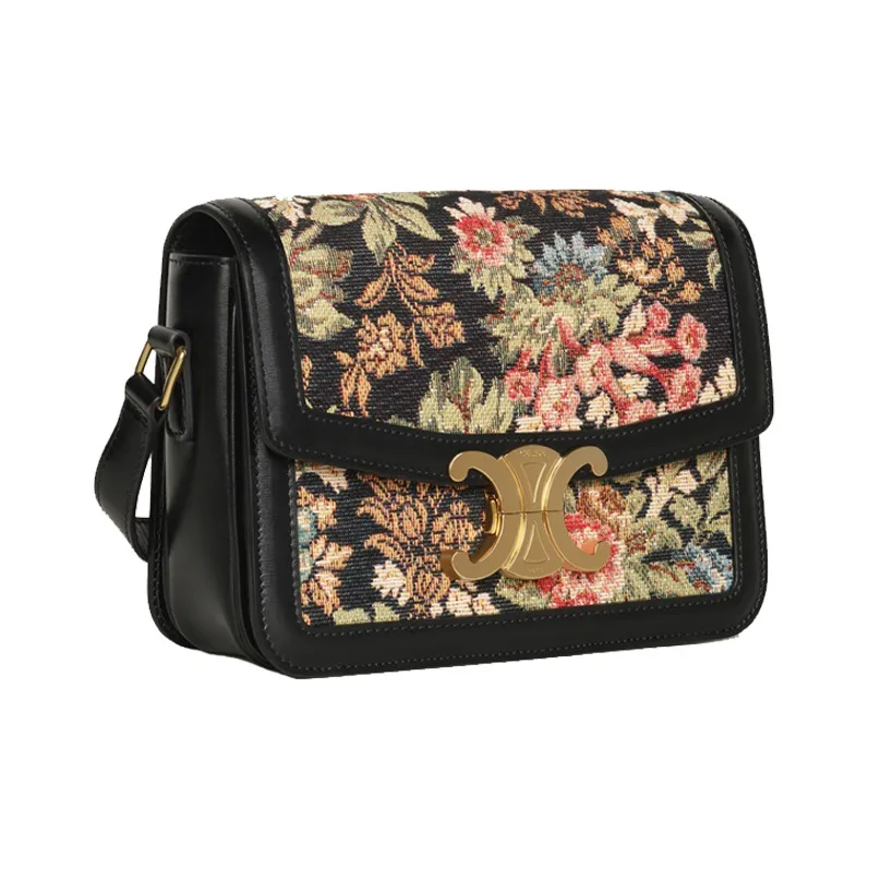 CELINE Triomphe Arc De Triomphe Жаккардовая ткань Телячья кожа Обметка Маленькая квадратная сумка Сумка через плечо