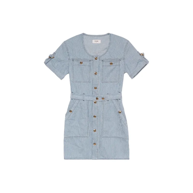 CELINE SS23 Короткий рукав Платье Женское Синее