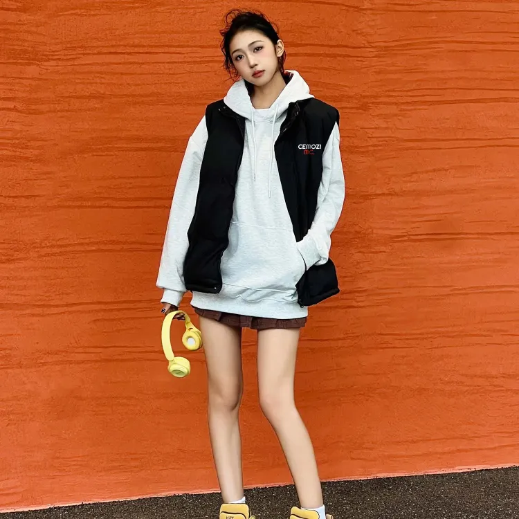 Black Vest + White Sweatshirt (Fleece-Lined)