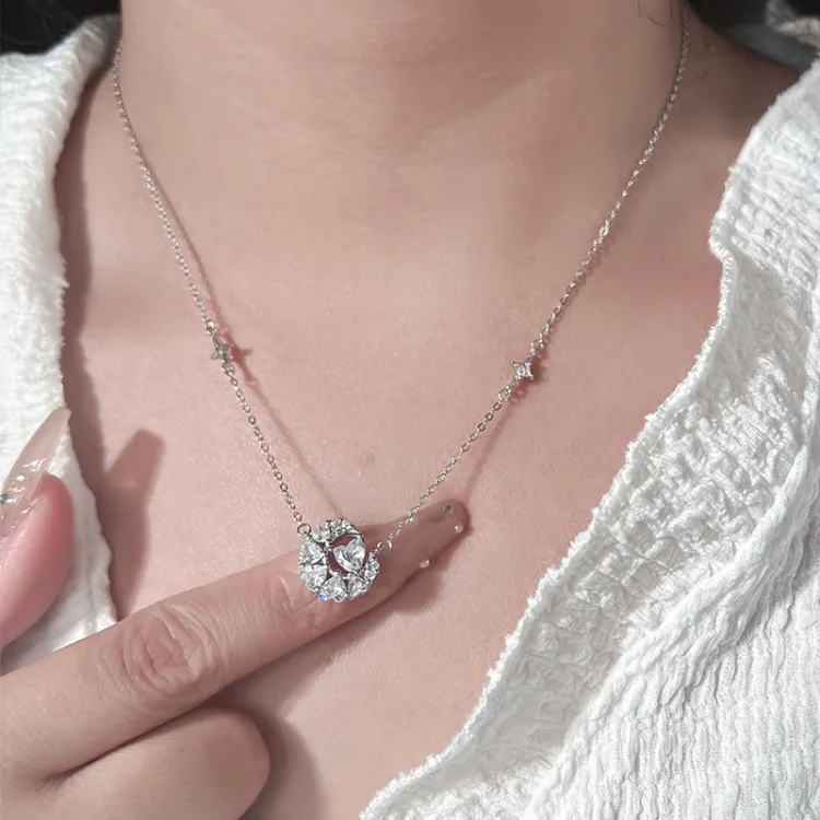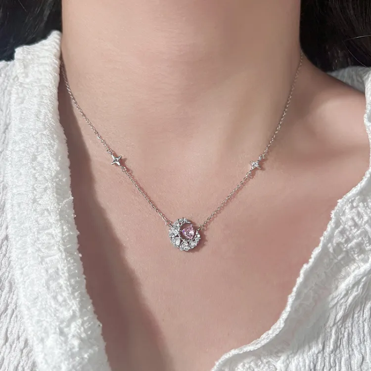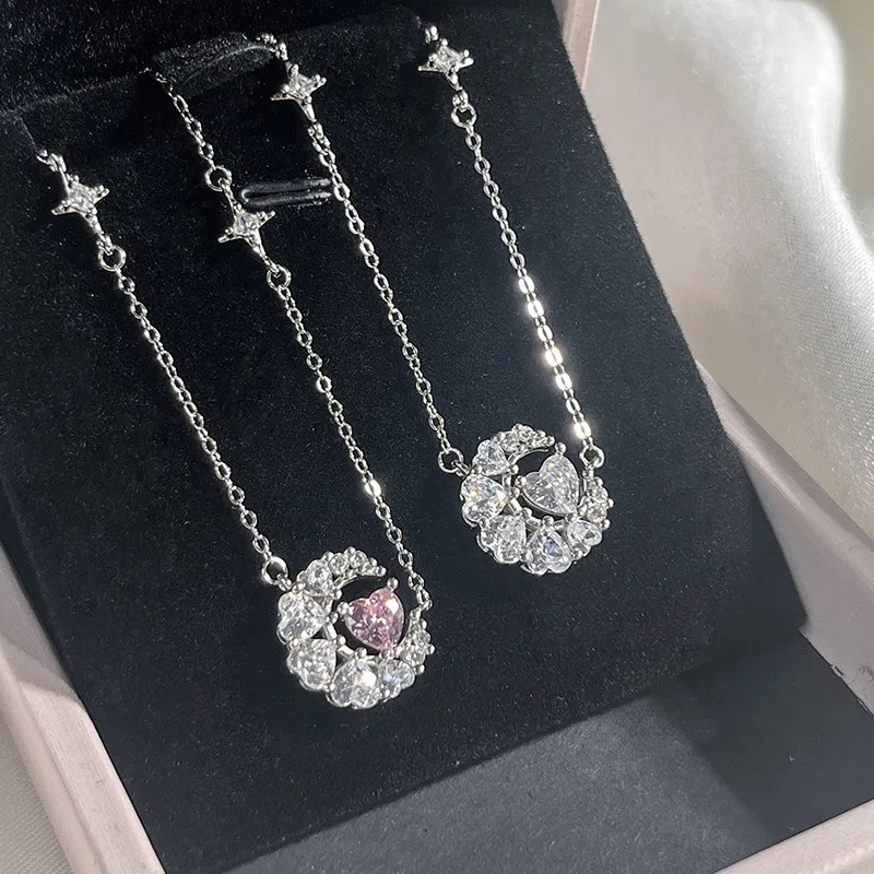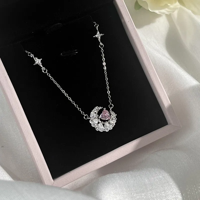 Стиль:Мечта Сердце Луна Ожерелье - Розовый циркон