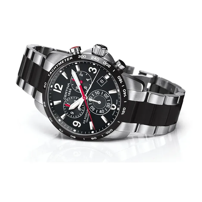 Certina DS Podium Collection Кварцевый механизм Мужские часы Циферблат 42 мм Черный корпус из нержавеющей стали