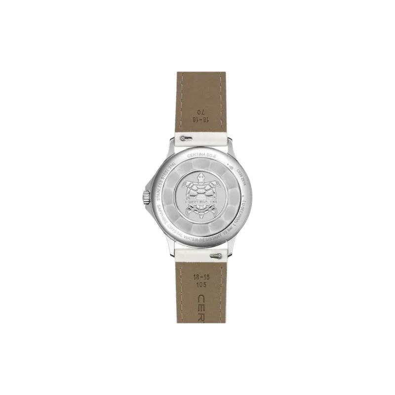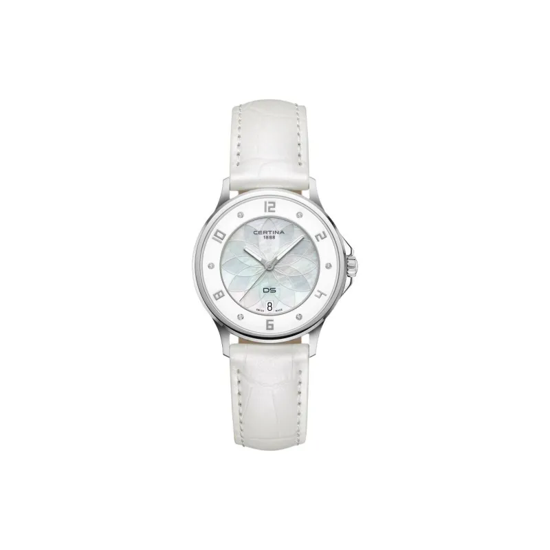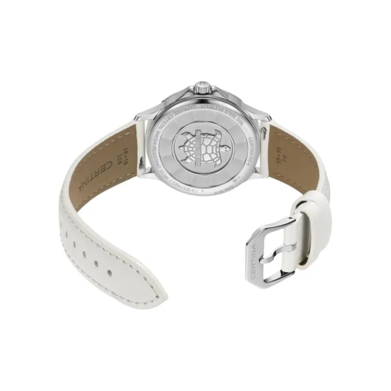CERTINA Кварцевый механизм Женские часы 35 мм Жемчужная раковина Циферблат Цвет Корпус из нержавеющей стали Ремешок из натуральной кожи