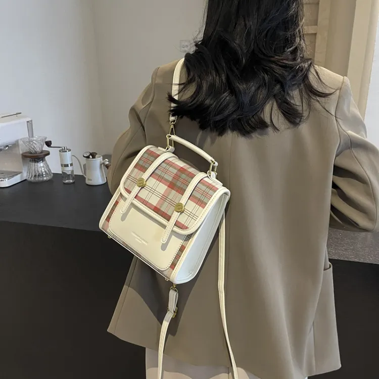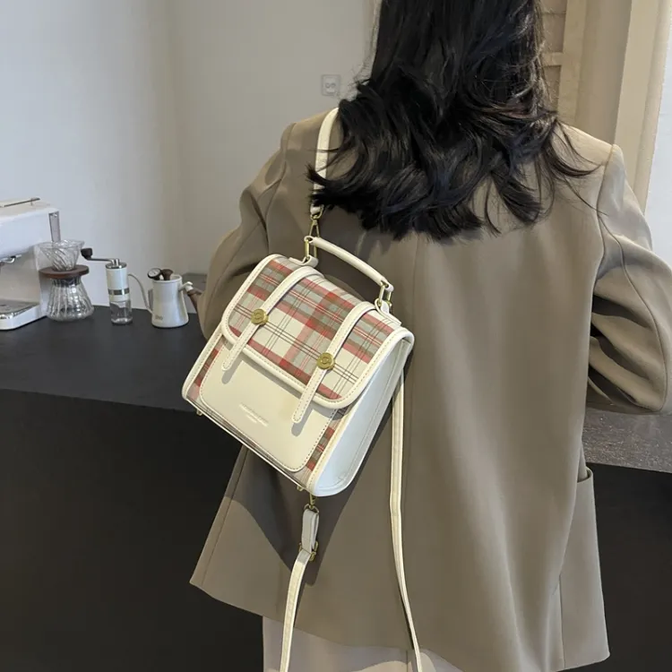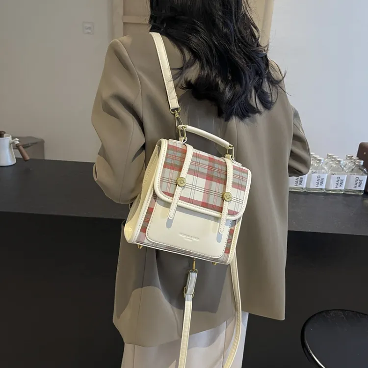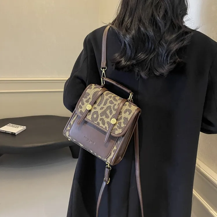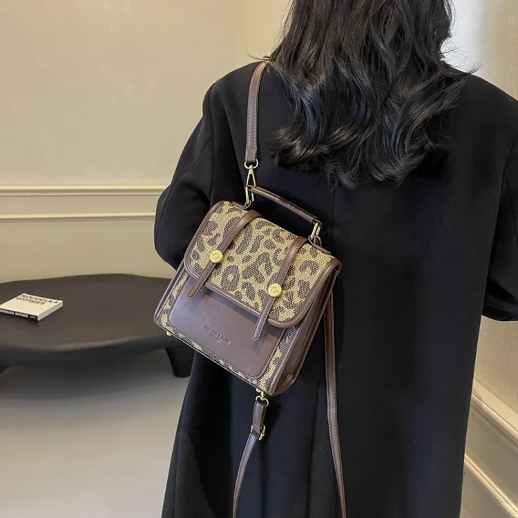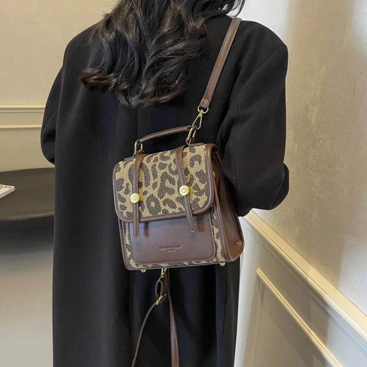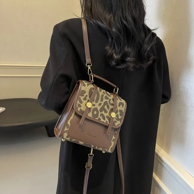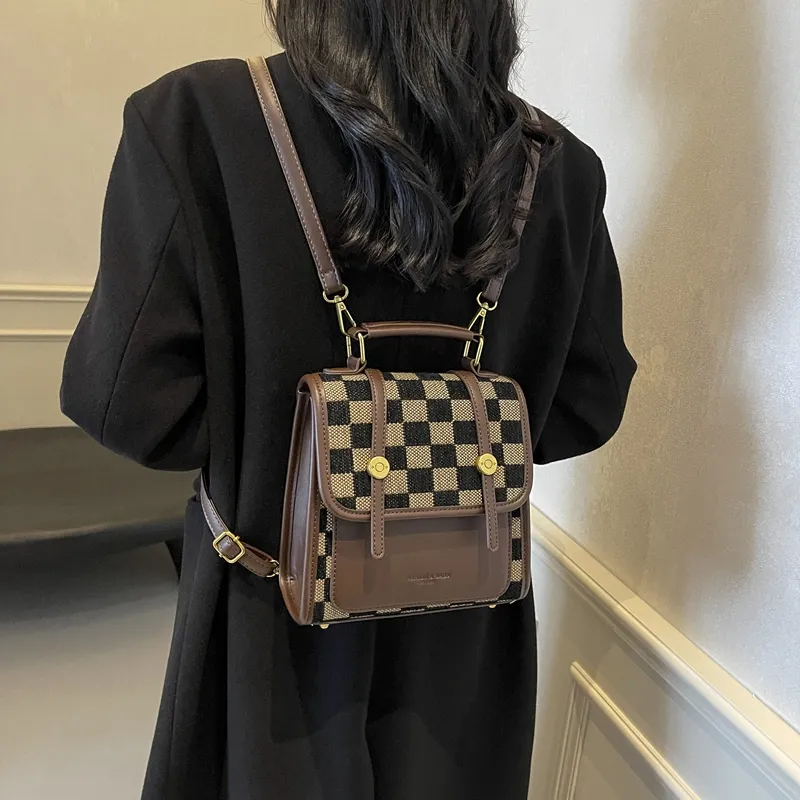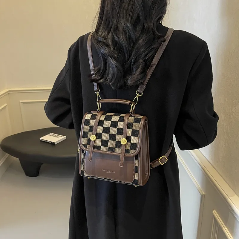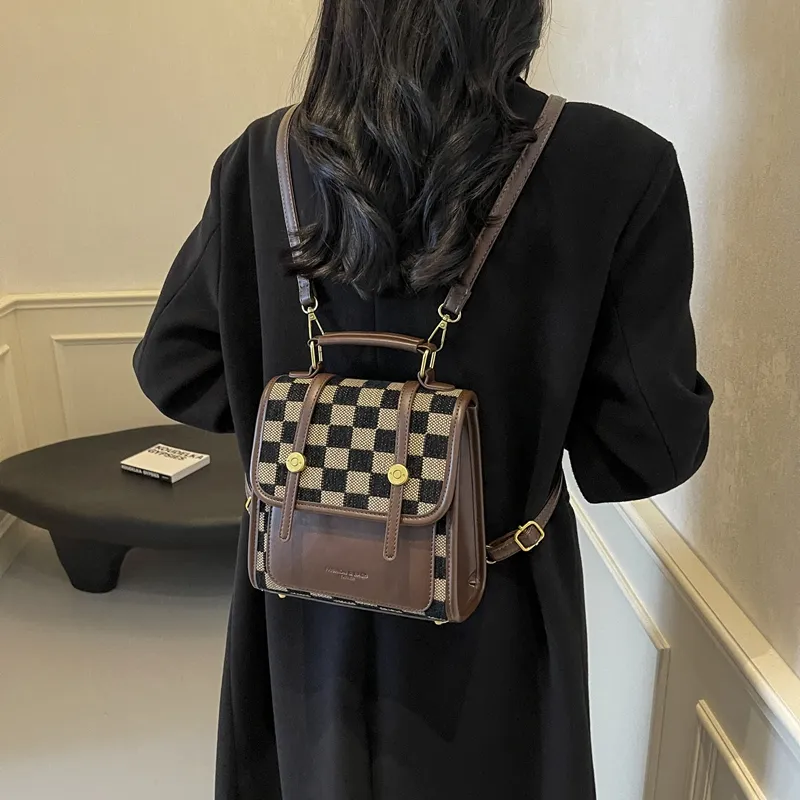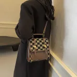 Champion Cub ПУ (полиуретан) текстильная смесь рюкзак женский шахматный узор коричневый леопардовый принт коричневый клетчатый белый