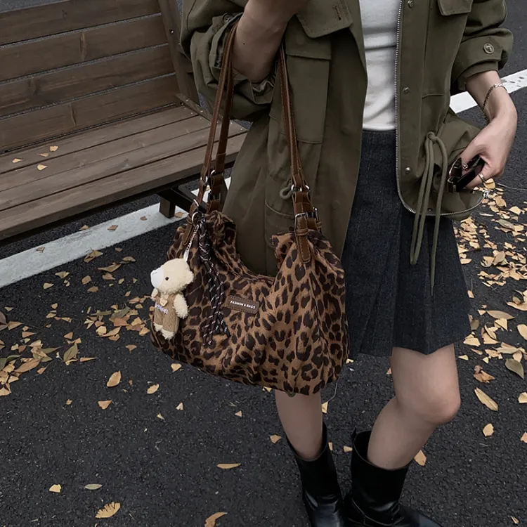 Champion Cub ПУ (полиуретан) Сумка-тоут Сумка через плечо Женская с леопардовым принтом Хаки Коричневый